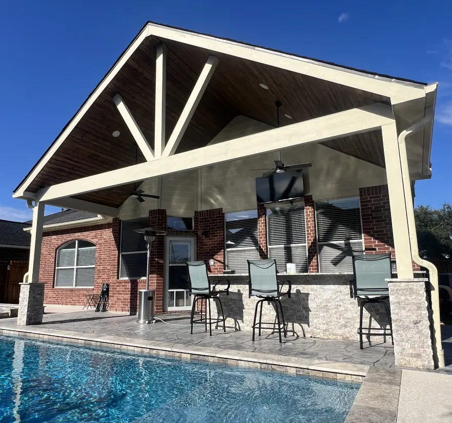 From cedar pergolas and covered patios to outdoor kitchens and stamped concrete, every detail is built with care and craftsmanship. Our team uses top-quality materials designed to handle Houston’s weather, ensuring your outdoor space looks great and lasts for years to come.